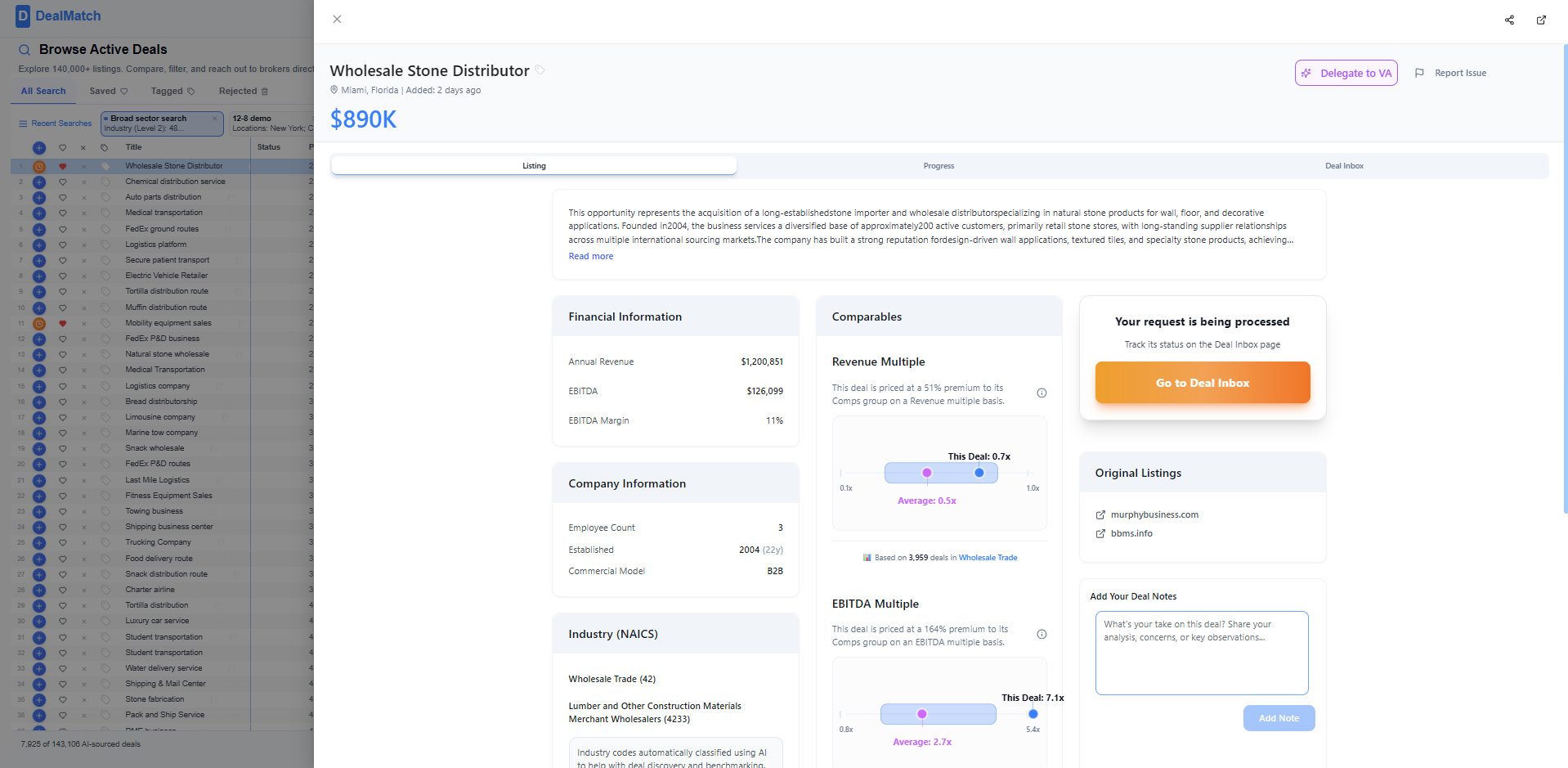 DealMatch is the leading platform for searchers managing on-market dealflow, with over 140,000 deals and hundreds of subscribed searchers.