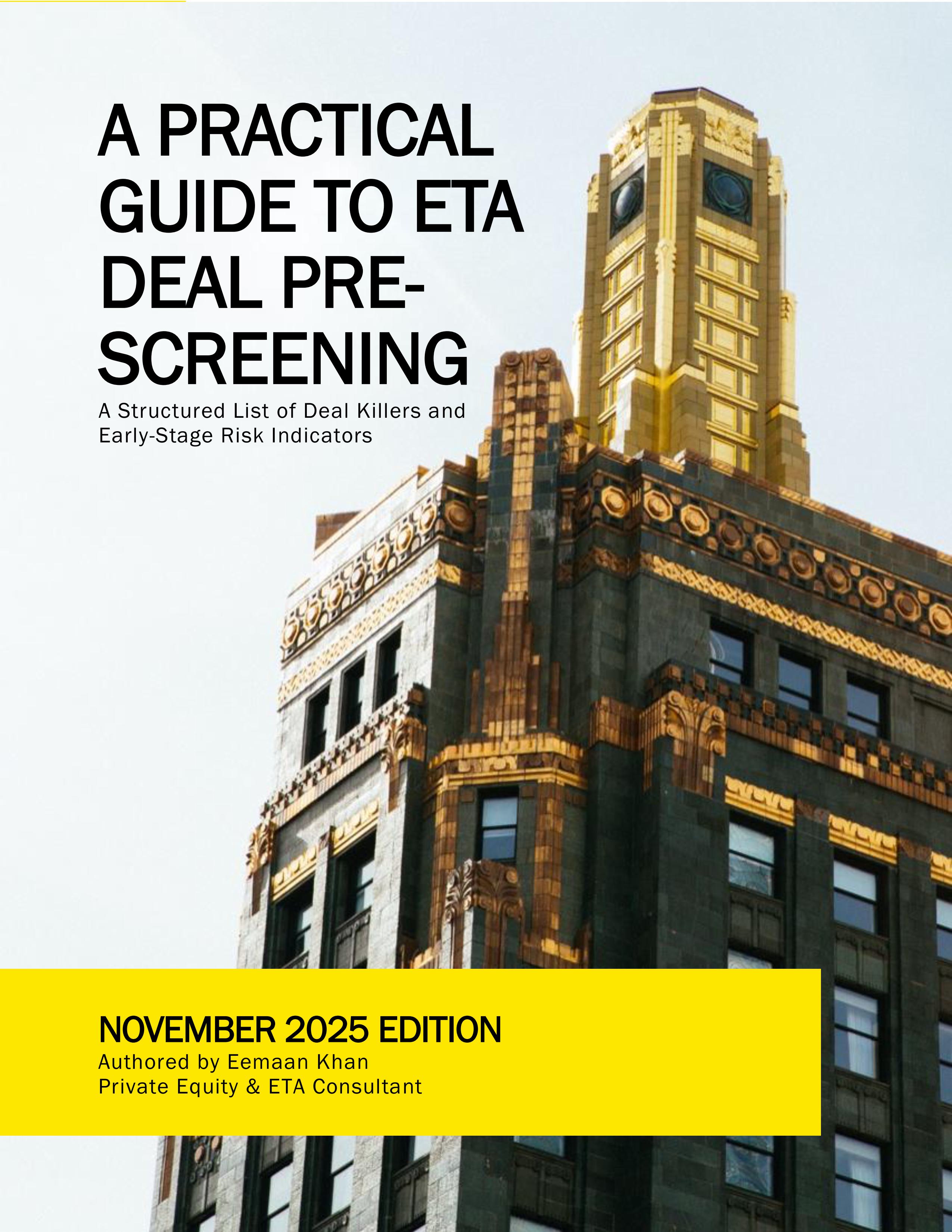 Today, I’m proud to share a teaser of a new resource I’ve developed: A Practical Guide to ETA Deal Pre-Screening.