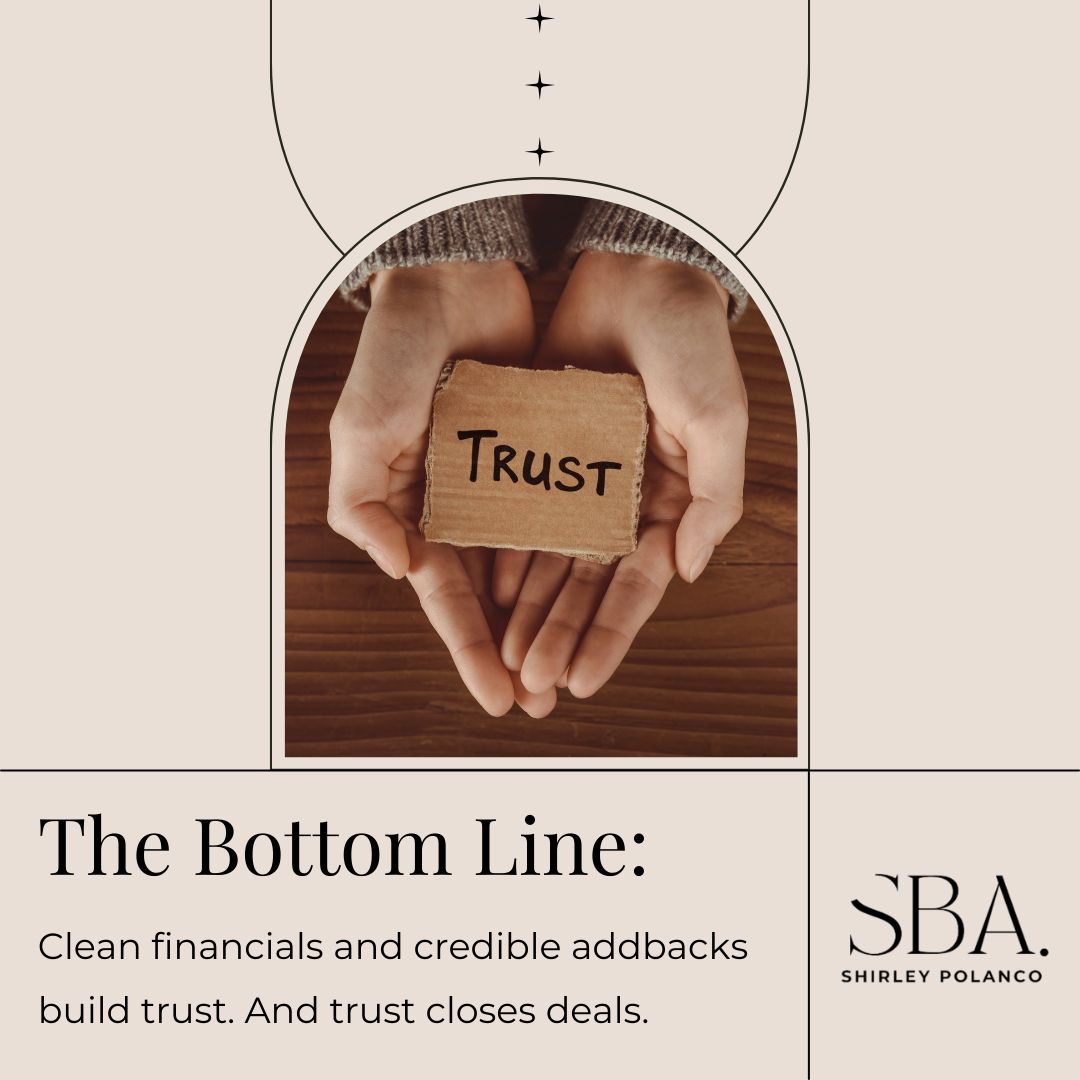 Bottom line: Clean financials and credible addbacks build trust. And trust closes deals.