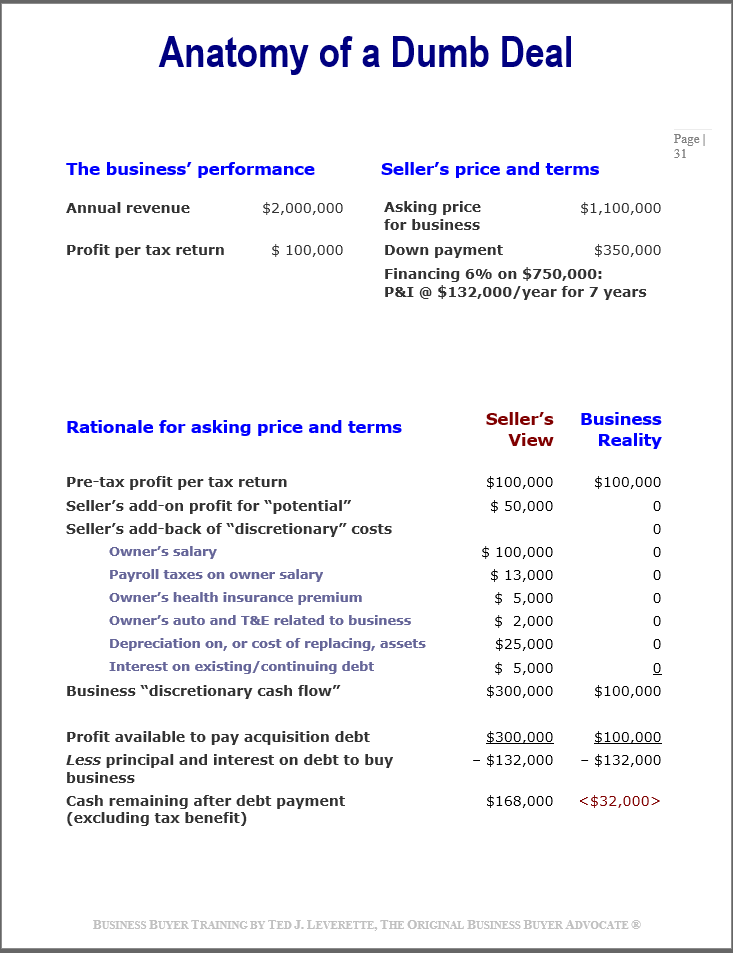 A buyer risks a cash flow crisis if he fails to realize that principal payments are not a tax-deductible expense; they consume cash. That’s why it is important to compute after-tax profit - to see how much cash is available to make principal payments on acquisition (and other) debt.