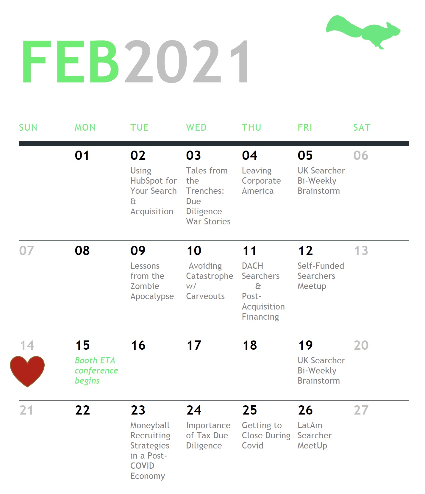 We've received great feedback on the increased line-up of live streams that we launched in January. For February, we expand their global nature with a meetup for self-funded searchers anywhere in the world and searcher meetups in the UK, the DACH region and Latin America. We kick off the month with a special education session featuring Kelsey Gernert, Head of Partnerships for Hubspot to talk about how you might use HubSpot for your search and acquisition. This session springs from recently becoming an Approved HubSpot for Entrepreneurs Partner, which provides a significant discount for our members. Kelsey will talk about both the free and paid versions of HubStack and answer your questions.