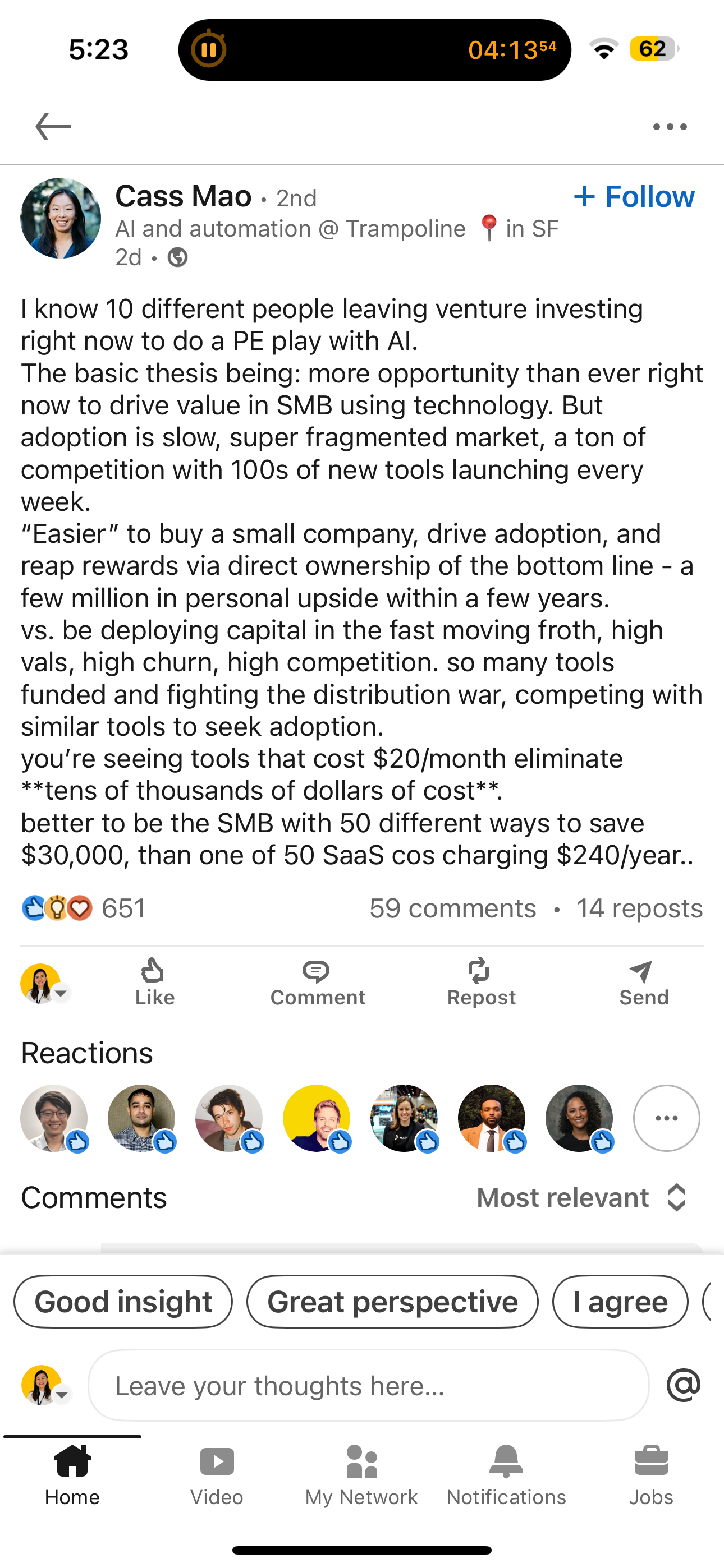 This is probably the 5th time I hear similar sentiment these couple of weeks like below. Is this just a huge echo chamber? Are you guys seeing more competition in SMB acquisitions? Driving up prices as more sources of funds are exploring on this asset class?