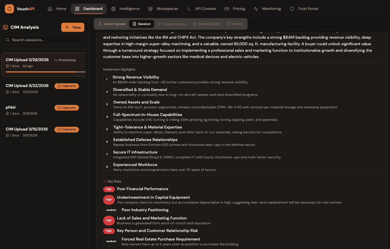 Over the past year, we have been building Vouch, an AI workflow and verification platform designed for real operating and investment work, not just generic chat. The original goal was simple: we wanted better internal infrastructure for sourcing, diligence, research, and decision support. Most tools felt shallow, hard to audit, and not built for serious financial workflows.