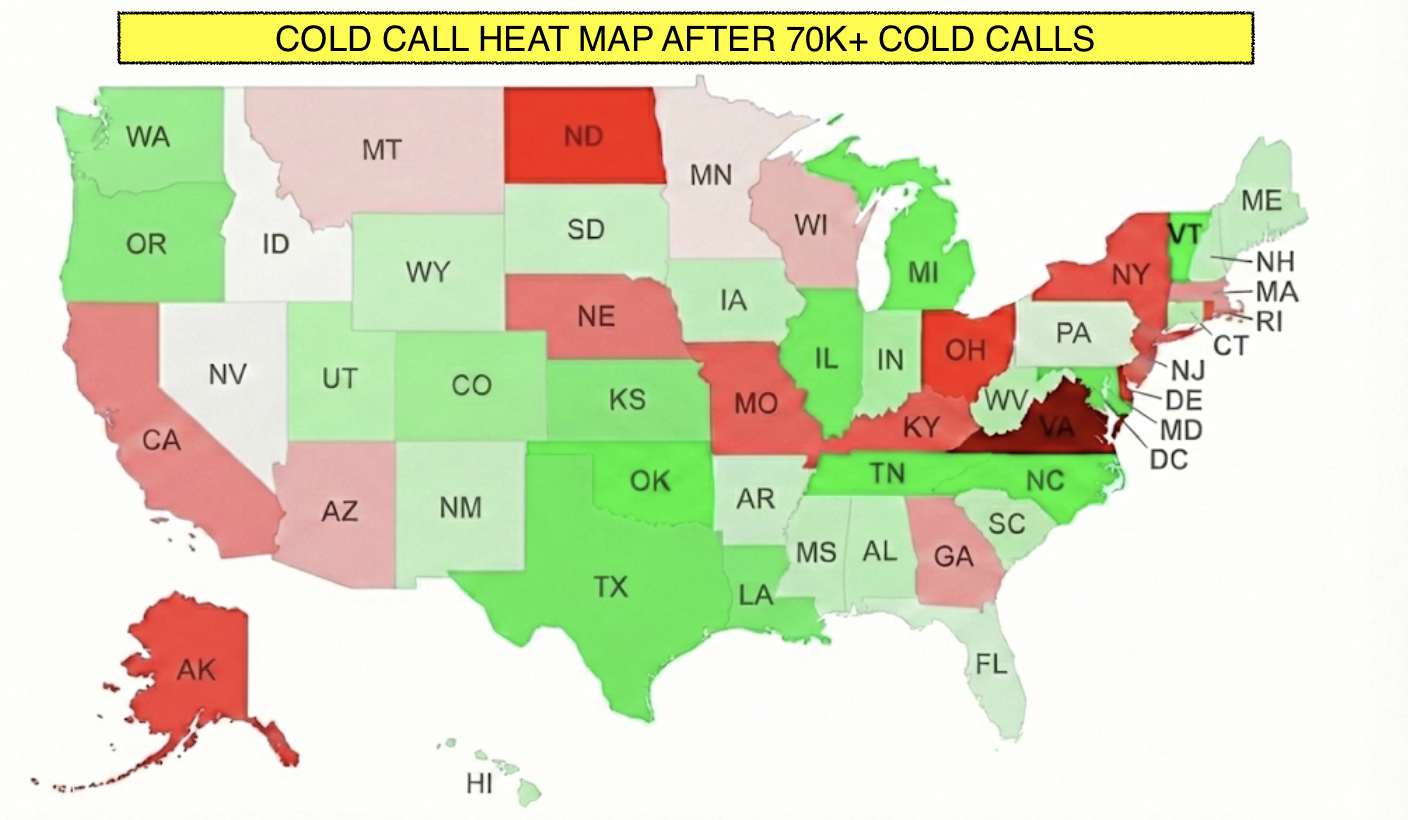 We built a heat map to show which states convert the best based on real conversations and closed transactions. By targeting the right industry, geography, and times you can easily 2-3X your conversion funnel