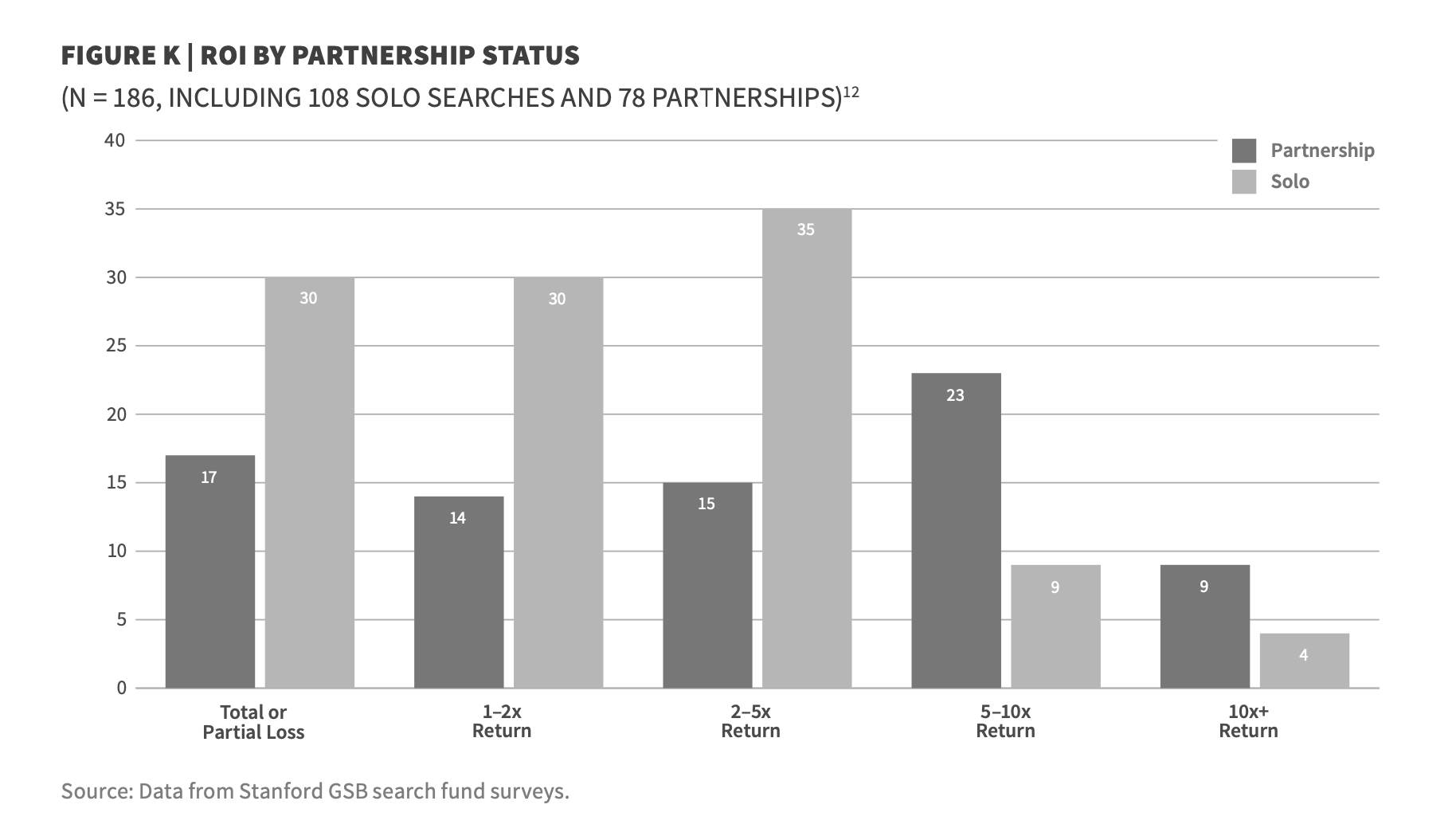 Hi all - has anyone examined having, rather than a single searcher or two searchers, an entire tech company as a Manager? I see from the Stanford Search Fund Study that there is heavy bias (2x+ more likely) on 5x+ returns to partnerships rather than solo searchers.