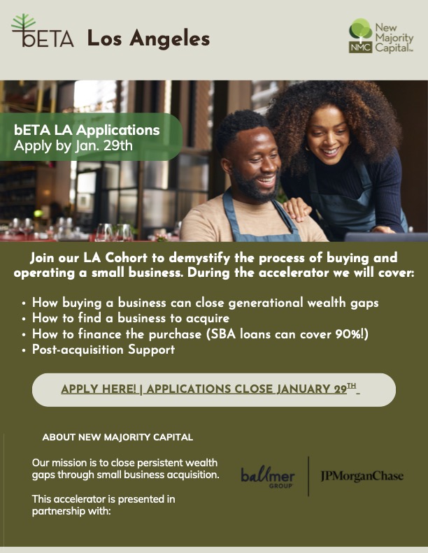 We’re excited to meet the next cohort of aspiring business owners and if you’re looking to acquire a business, New Majority Capital is here to support you on that journey.