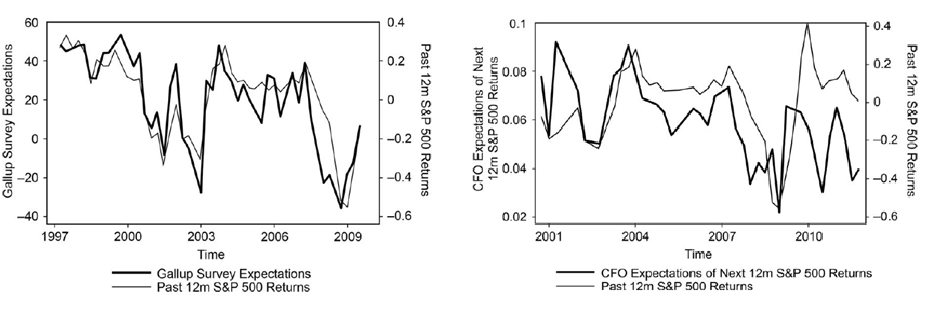 Shleifer looked at surveys of professional investors and public company CFOs and found that their forecasts for the next-12-month returns were highly correlated with the last-12-month returns.