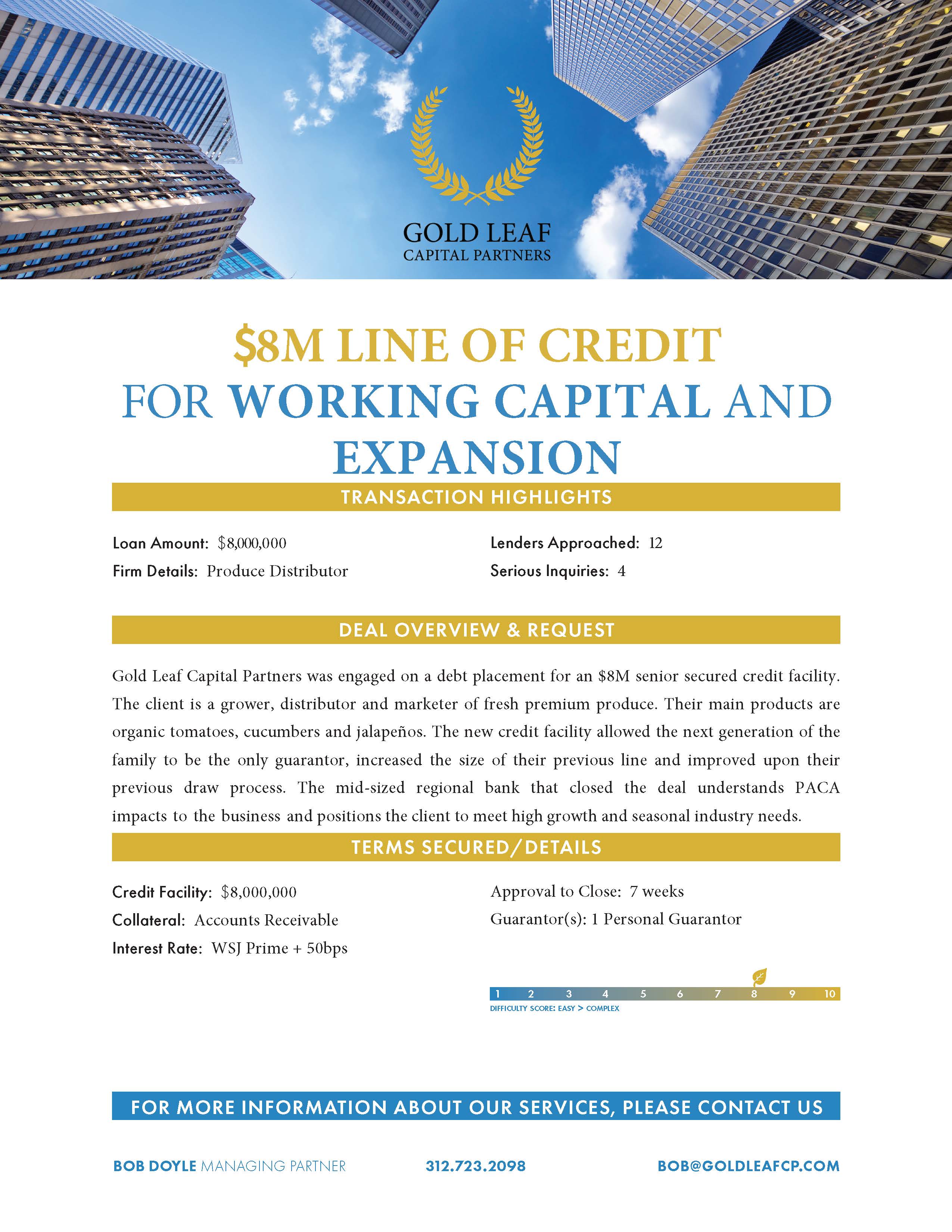 We were privileged with the opportunity of securing an $8M line for a client. I periodically see questions on if debt placement firms can add value. My answer and biased opinion is: absolutely, depending on the deal and the broker. Our advice (if time allows) is to test the waters with your banking contacts first and if there isn't any traction, pass it along to a debt placement firm with experience and some certainty to close. Not many lenders on this platform would have touched this deal and that's where our services become invaluable for a business owner or sponsor.