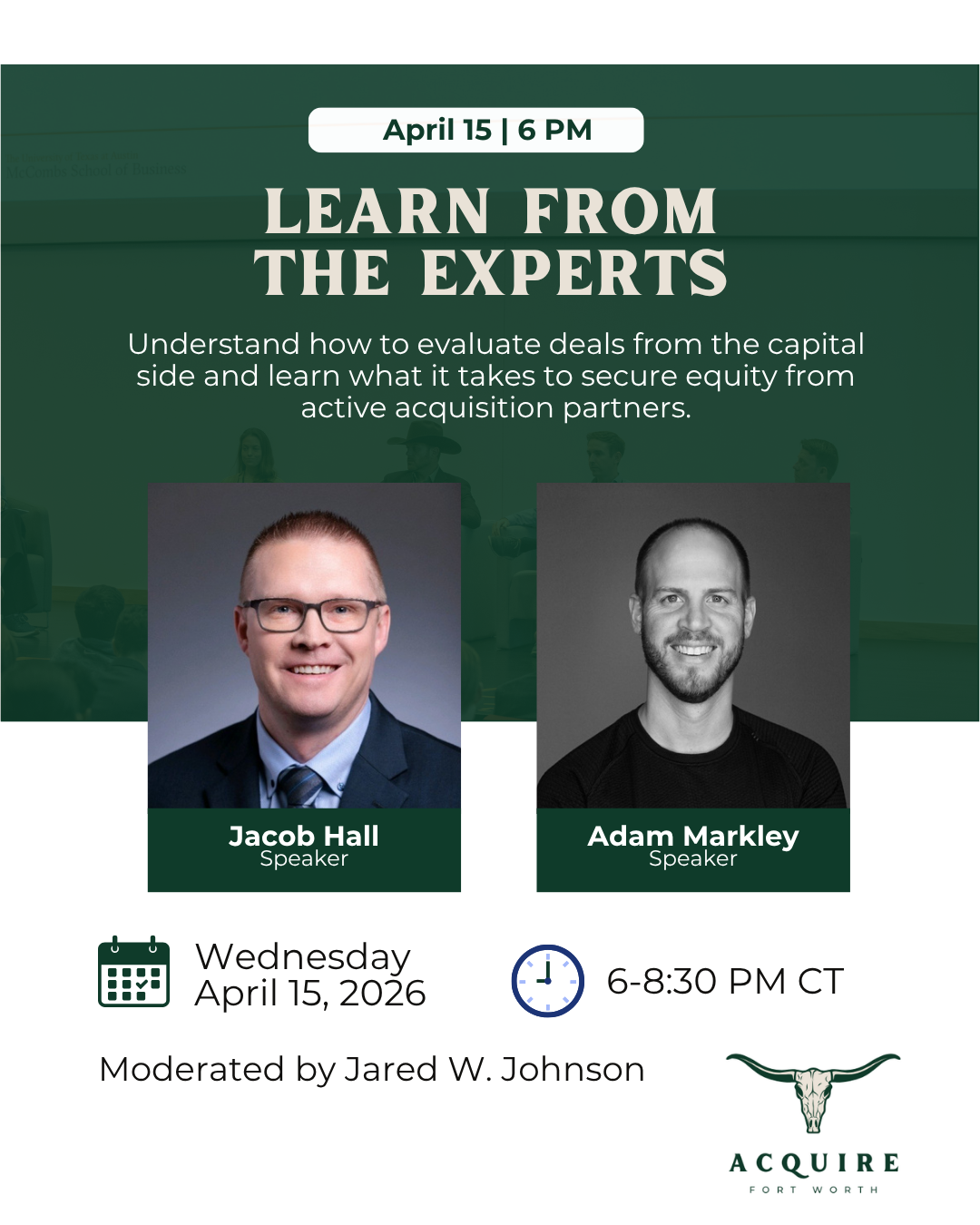 At the next Acquire Fort Worth on April 15, we’re bringing in Jacob Hall and Adam Markley to talk through exactly how they evaluate opportunities on the capital side.