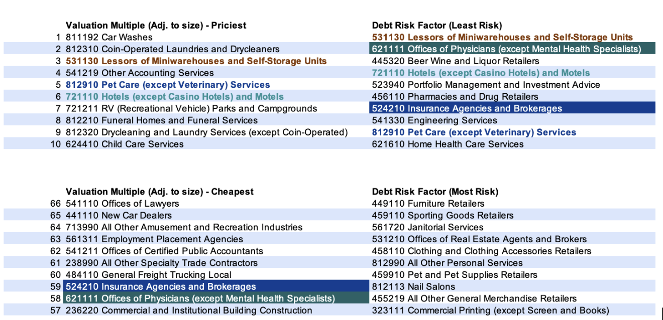 The color coding is already revealing the two best industries (not breweries, not yet) - offices of physicians and insurance agencies are cheap, they have very little risk, and they represent everything that’s wrong with America