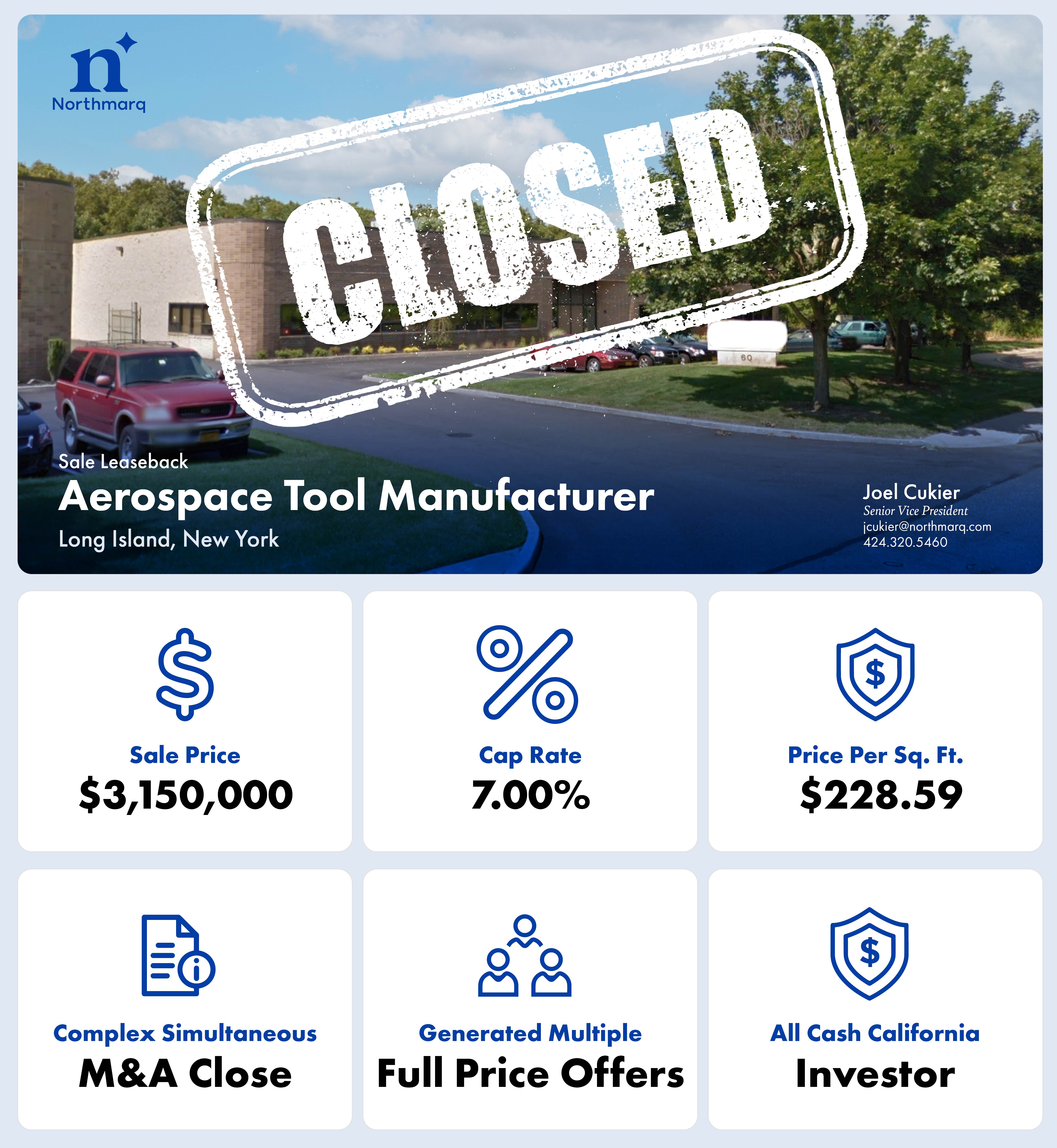 Just Closed Simultaneous Sale Leaseback - Created Arbitrage for the Acquisition