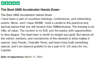 You can check out our TrustPilot Reviews here: https://www.trustpilot.com/review/smbootcamp.co