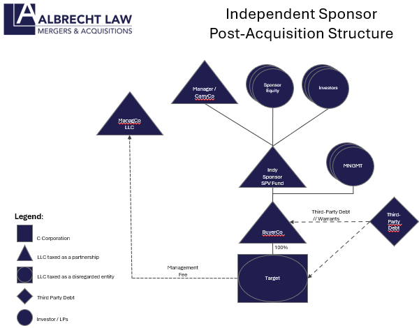 This M&A Monday, we are discussing the structure and financing of an Independent Sponsor deal (called, Fundless Sponsor, or my favorite, Indy Sponsor). Indy Sponsors usually take down deals between $2m-$10m EBITDA, with some outliers. The IS can be extremely flexible, creative, and is often favored by founder-sellers. I lovingly refer to Indy Sponsors as Cashless Sponsors – they have everything except money. As such, we have developed a special legal engagement for Indy Sponsors.