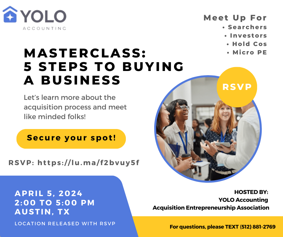 Tailored for newcomers, experienced buyers looking to refine their techniques, investors in search of good operators, and small to medium-sized business owners yearning for a supportive network. Learn more at the RSVP link here: http://lu.ma/f2bvuy5f