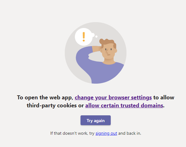 Technical Question for SF community -- does anyone know how to fix the below issue that arises when attempting to login to Microsoft Teams via Chrome/Edge? I've followed the Microsoft troubleshooting suggestions, but they have not resolved the issue of not being able to login via web browser.