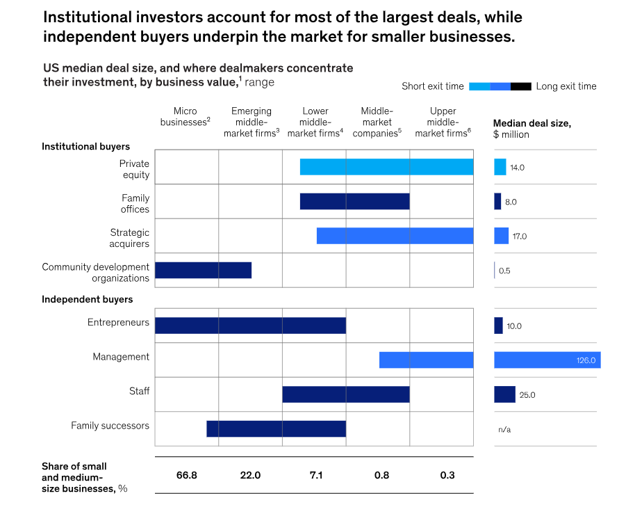 The McKinsey report on the “Great Ownership Transfer” is one of the more insightful analyses I’ve seen on the coming wave of small-business ownership transitions. For anyone involved in entrepreneurship through acquisition, independent sponsorship, or family office investing in SMBs, it is well worth the read.