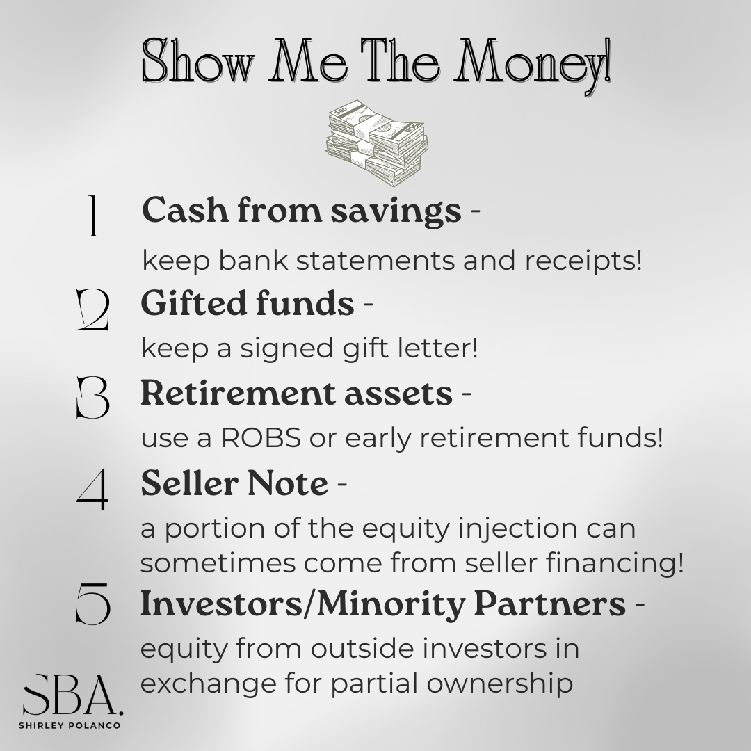 As a forward thinking business leader understanding Equity injection requirements is crucial. Equity injection is the portion of funds that come directly from you the borrower, typically in the form of cash. For SBA loans it is often a requirement (with few exceptions). SBA allows for various equity injection options to cover the amount required, lets discuss further…