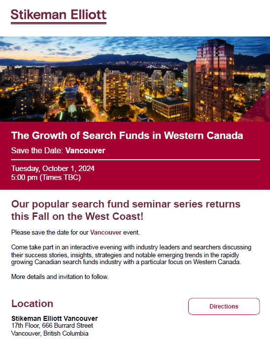 We are hosting a search fund seminar in Vancouver, British Columbia this fall. Please DM if you are interested.