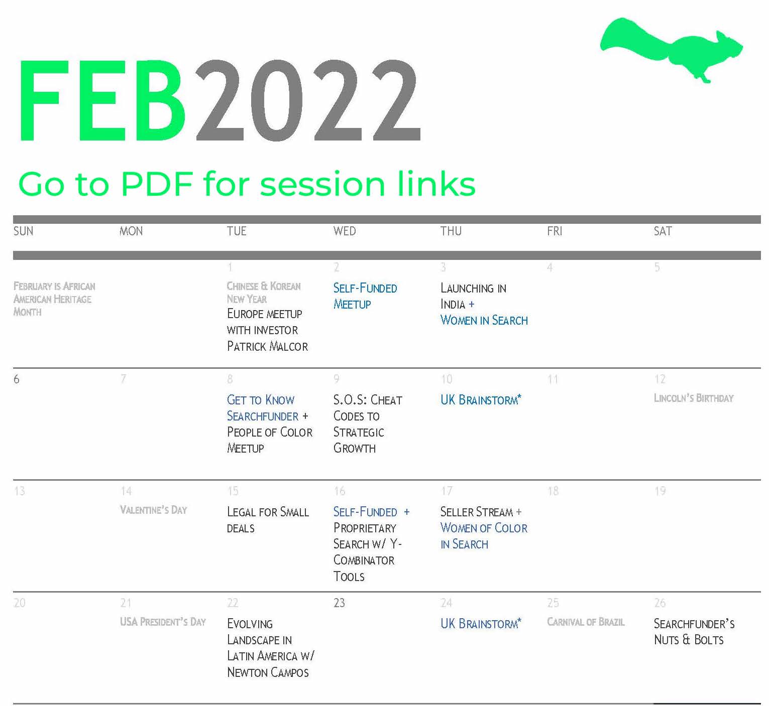 Searchfunder Monthly Calendar: February 2022