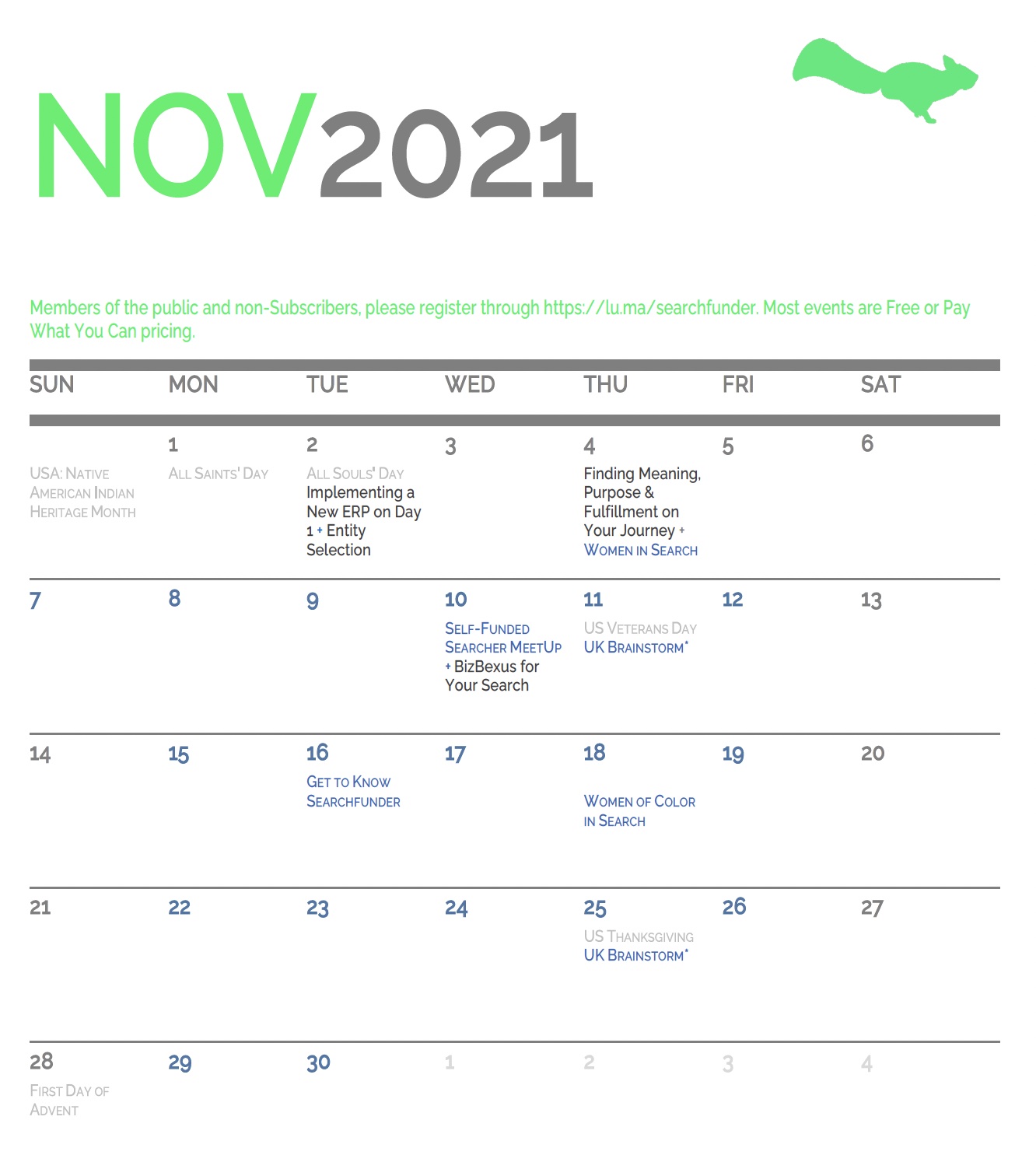 Searchfunder's Monthly Calendar: November 2021