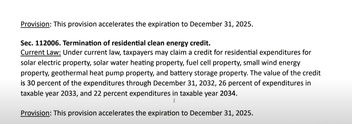I'm looking for solar companies to acquire and this pending legislation will bring an end to the 30% tax credit that was set to last for another 10 years. I know it isn't law yet, but this was approved by the house and obviously has Trump standing behind it. How should I think about the impact on the valuations of solar panel installation companies? I have to think that if the price goes up 30%, demand will go down substantially. Thoughts?
