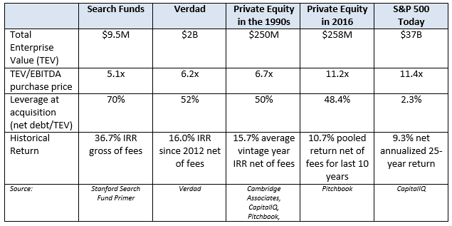 When you stare at these numbers, we hope that you see the same pattern we do: the lower the purchase price and the higher the leverage levels, the better the returns. We think private equity worked so well in the 1980s and 1990s — and the reason search funds are working so well today —because of these quantitative differences.