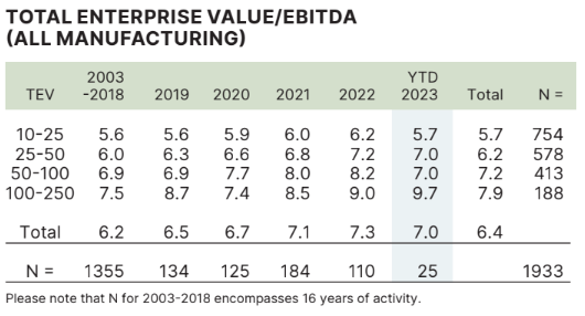 You can buy 3 or 4 small-ish manufacturing companies for ~5.7x EBITDA, rollllllll them together, and then sell them for 7-9x EBITDA.