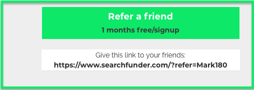 Chances are you have friends and colleagues who could benefit from being part of the Searchfunder.com community. Now being good to your friends provides a dollop of goodness for you. When your friends and colleagues sign up on Searchfunder, you will receive 1 month's worth of access credit. Below is how to do it.