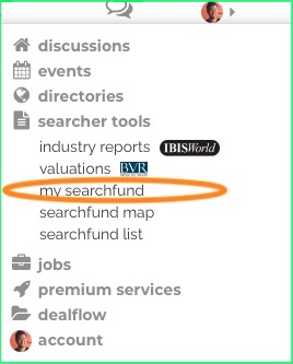 Step 1: Click on my searchfund under the searchfunds section on the main menu next to ► located next to your profile pic