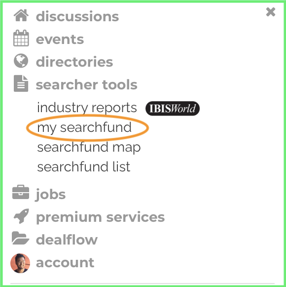 Click on my searchfund on the main menu ► located next to your profile picture.