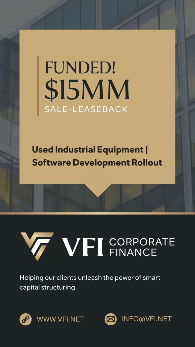 VFI Corporate Finance just funded a $15MM structured sale-leaseback, covering 80% hard costs and 20% soft costs, including software development.