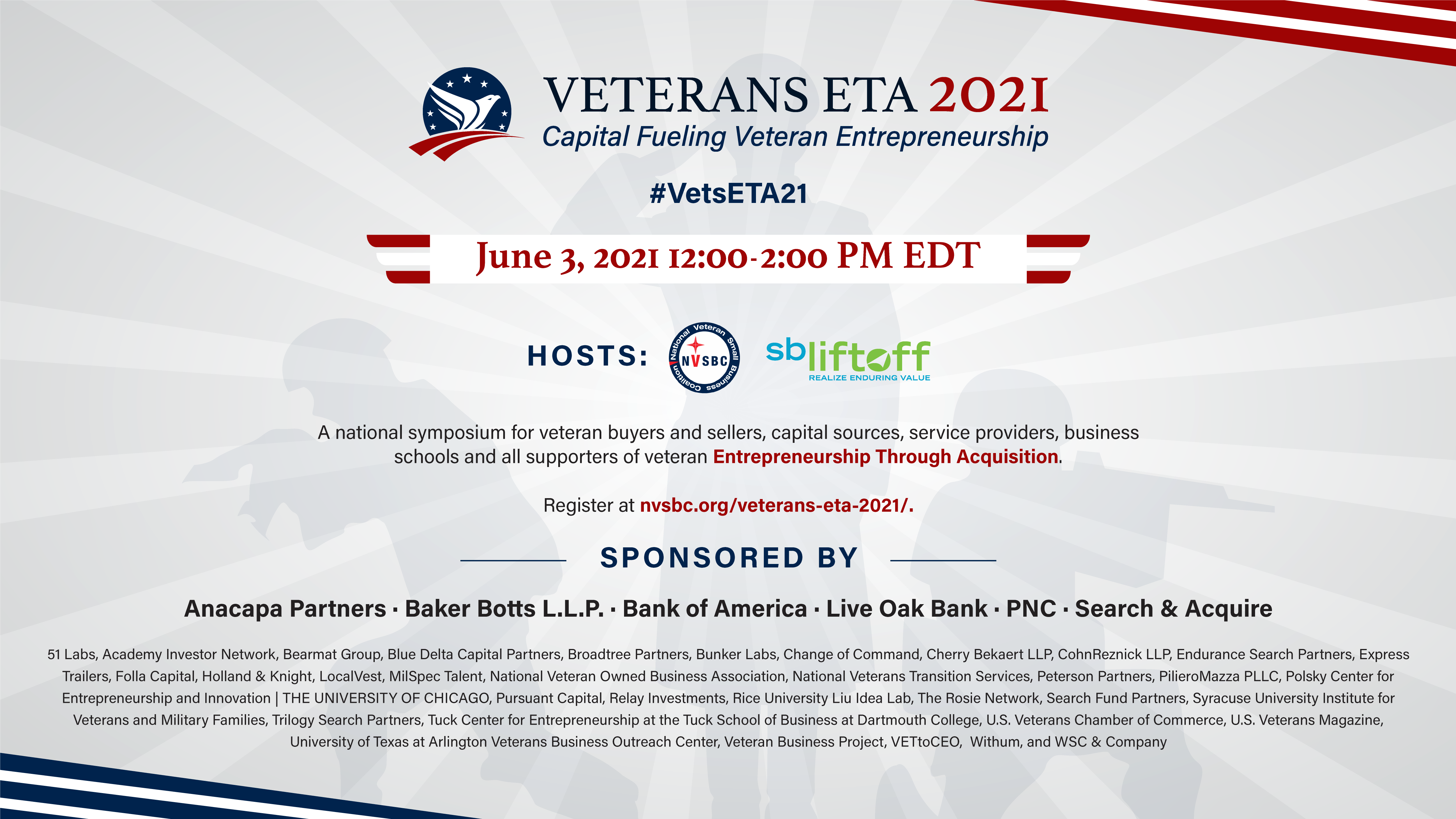 We are helping put on the first annual Veteran ETA Event on June 3rd from noon - 2pm EDT with some other great organizations.