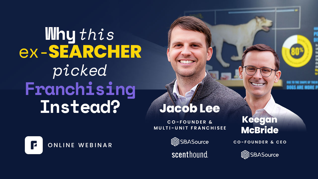 After a successful run at BCG, Jacob Lee got into then popular search fund model. Instead, Jacob pivoted into franchising—securing multi-unit rights for Scenthound across Alabama and Nashville. Today, he’s not only a thriving franchisee but also the founder of SBA Source, a platform helping future franchisees navigate and secure SBA loans.