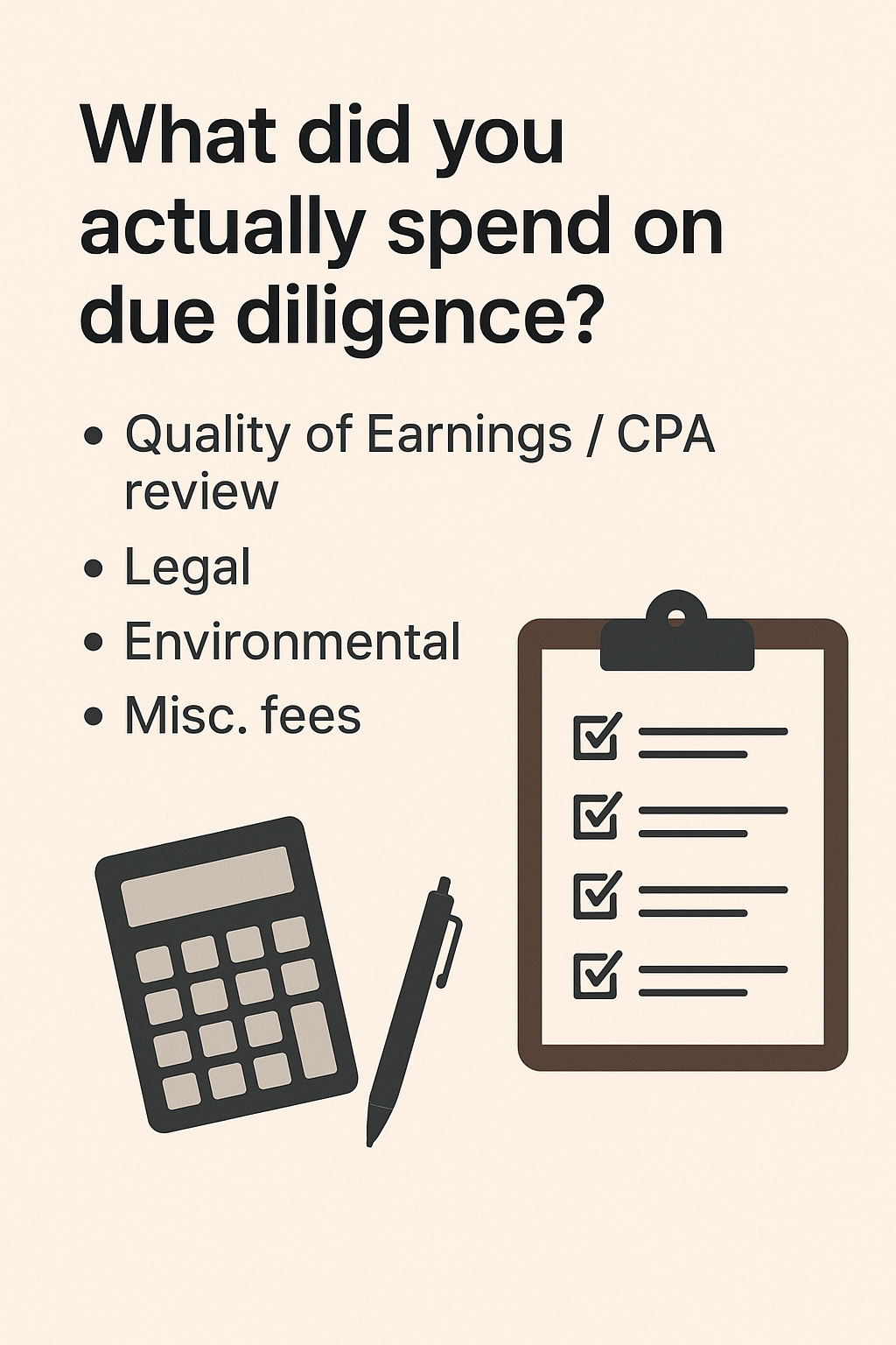 I’m budgeting for my first deal and trying to get a realistic sense of how much cash I should set aside for diligence.