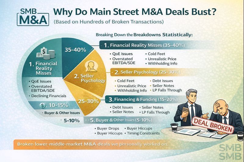 We reviewed a large set of broken lower-middle-market M&A matters. Different industries, deal sizes, buyers, sellers, and structures.