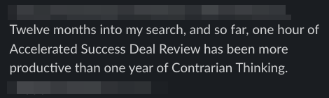 "Twelve months into my search, and so far, one hour of Accelerated Success Deal Review has been more productive than one year of Contrarian Thinking."