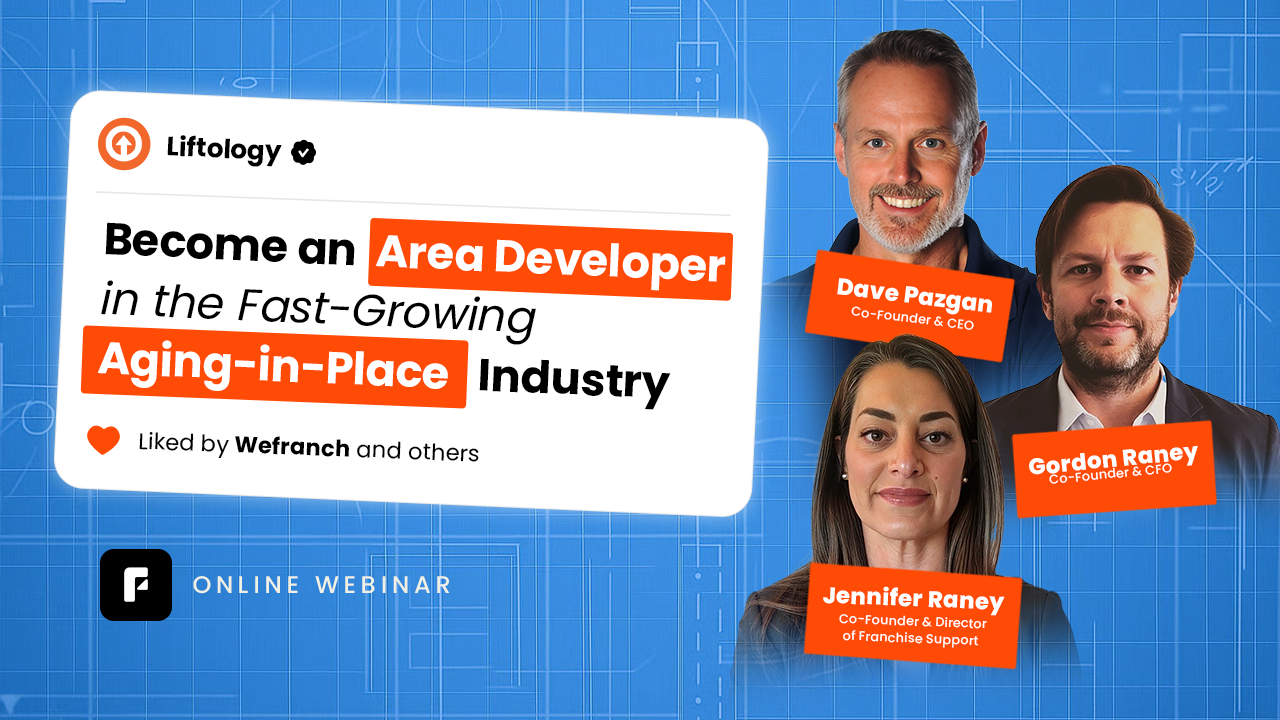 Back in 2010, Dave Pazgan built the first and largest aging-in-place franchise (101 Mobility). Among his top franchisees were Gordon and Jennifer, who later sold their portfolio and noticed something big: the market’s exploding, but most brands can’t keep up.