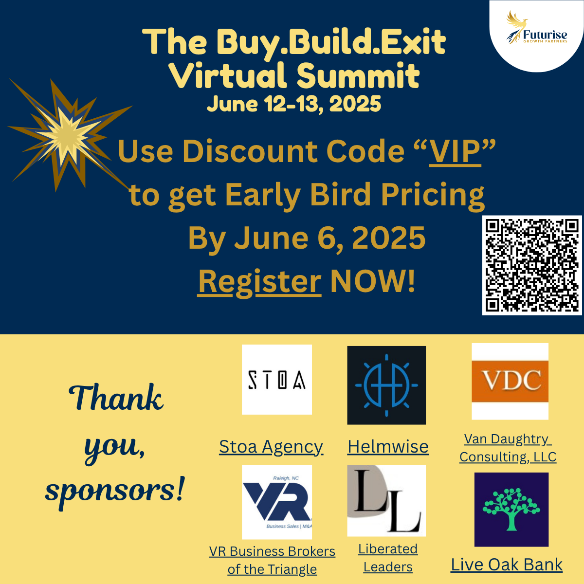 See deals from the seller's perspective at the Buy.Build.Exit Virtual Summit (Buy-side & Sell-side tracks concurrently)
